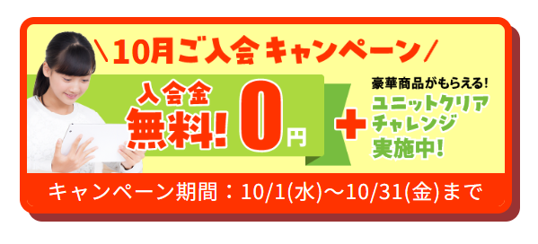 なんと、10月入会した方に限り11,000円の入会金が無料!年に数回もない、お得なキャンペーン期間です。